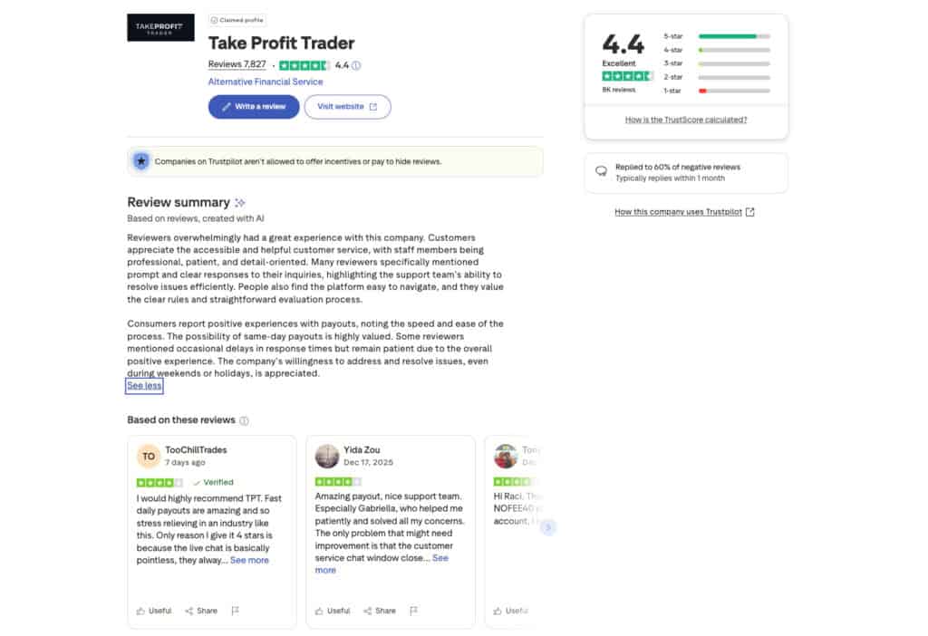 Beyond trading accounts themselves, Take Profit Trader positions its support infrastructure as part of its overall value. Customer support, rule documentation, and account management systems are designed to reduce ambiguity. While no support operation is flawless, the firm’s emphasis on accessibility and responsiveness is reflected in a large proportion of positive trader feedback. For many traders, knowing that issues can be resolved without prolonged uncertainty contributes significantly to overall confidence in the firm.